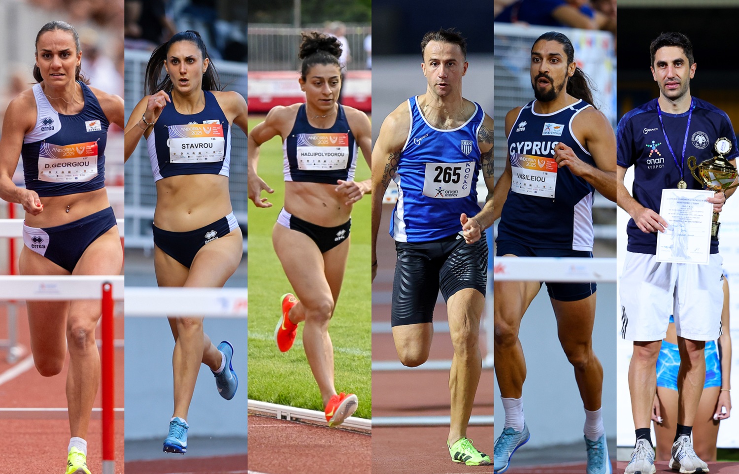 * Στη φωτογραφία, οι κορυφαίες και κορυφαίοι στα εμπόδια, Δάφνη Γεωργίου (100μ. εμπόδια), Καλυψώ Σταύρου (400μ. εμπόδια), Χρυστάλλα Χατζηπολυδώρου (3.000μ. στιπλ), Μίλαν Τράικοβιτς (110μ. εμπόδια), Τάσος Βασιλείου (400μ. εμπόδια) και Γιώργος Τοφή (3.000μ. στιπλ.).